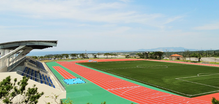恩納村は、沖縄県内でも有数の観光リゾート地であり、多くの観光客が訪れます。その観光地の山間部に赤間総合運動公園があり、自然あふれる立地や山間部から見下ろすオーシャンブルーの海のロケーションは、多くの人の心を惹きつけ癒やします。赤間総合運動公園内には野球場、サッカー場、陸上競技場、サブグランド、多目的運動場があり、体育に関する施設を一般公衆の利用に供することにより、村民の健康の増進及び体力の向上並びに文化の発展を図るため設立されました。また遠隔施設に、コミュニティ広場、真栄田漁港運動広場もあり、そこではスポーツ、レクリエーション、健康増進、プロスポーツ、合宿等が行われており、毎年多くの人がご利用ご来場しております。